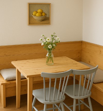 Corner bench seating in the dining room